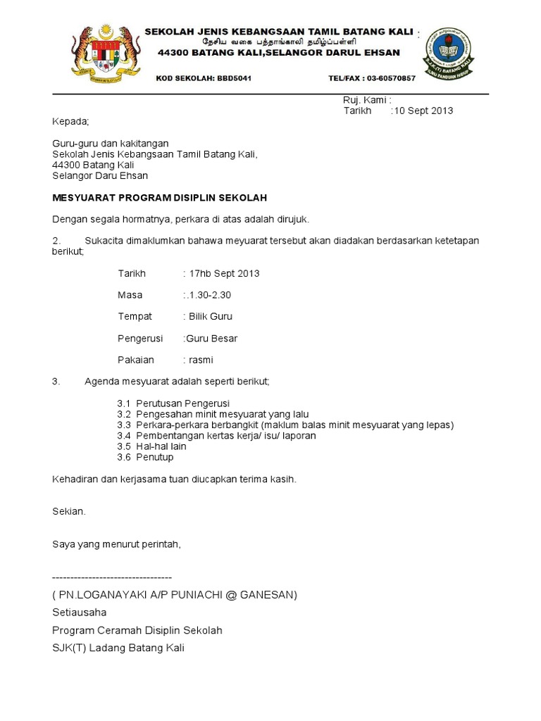 Bbb8306 tel03-79567536 fak03- 79563505. PK18 - Pengurusan PELAKSANAAN PDP TANPA KEHADIRAN GURU MATA PELAJARAN. Mengikut SPSK Saya ingin perkongsikan contoh surat panggilan mesyuarat dan minit mesyuarat.