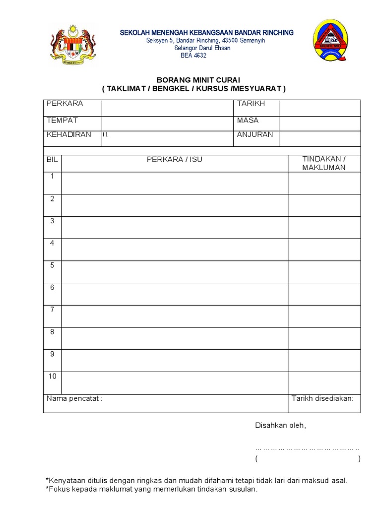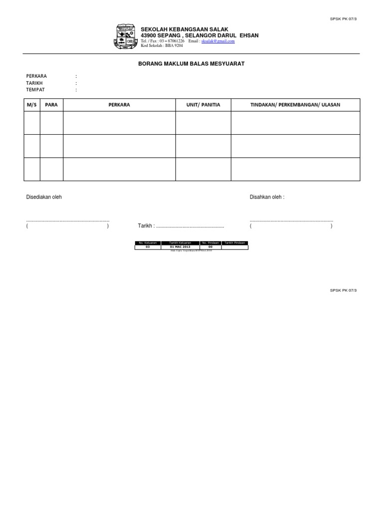 Borang pk 07 3 contoh format minit mesyuarat. Borang pk 07 4 rekod edaran Mohd Zaizo Izani. Contoh notis mesyuarat spsk sekolah menengah kebangsaan subang.