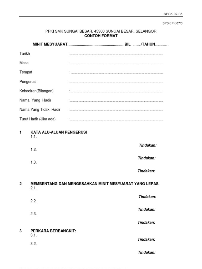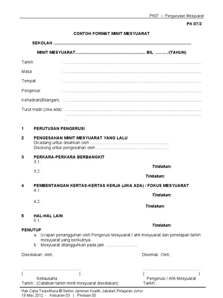 Borang Pk 07 3 Contoh Format Minit Mesyuarat Pdf