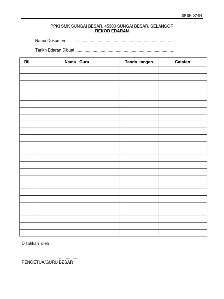 Borang Pk 07 4 Rekod Edaran Pdf